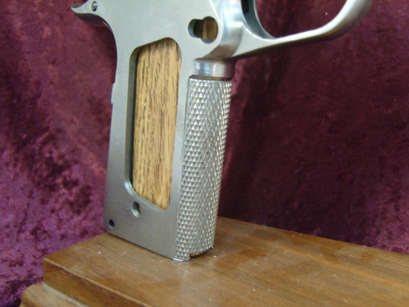 Robert Miller Miller Custom Here are the guns as I was finally finishing up the polishing and getting them prepped for bluing. Keep in mind they are a bit dirty from the polishing compound dusting up and getting all over everything. These guns took me 2 days to do the blasting and polishing. I started out by flat plate polishing with 400, then 800, then 1000, then 1500 grit sandpaper on a granite inspection plate. I followed up with black 555 polish to get a good sheen and then the white 555 to do the final polishing. These pictures were literally taken at 3am on December 31st so I could get them to Fed Ex and off for bluing at Glenrock Blue. Options that are currently finished on the guns as of - 10/27/08: Diamond Checkering, Flat Topped and Serrated, Lowered and Flared Ejection Port, Novak Sight Cut, Front Sight Blank, Kart Barrels Fitted - throated - head spaced, Smith and Alexander Grip Safeties Fitted and Blended, Frame and Slides Fit along with recoil systems installed. The Display Cases are laid out and the tracing of the pistols for the recess in the case has been done. The Knife blanks arrived and I'll be marking them with the serial numbers and an AR15.com Bolt Face Logo as well (granting there is enough space for a tasteful engraving). Here are a few pictures of the Slides and Beavertails Here are a few pictures of the Frames and all the Parts that will eventually become the pistols. Here are some pictures of the pistols as of November 9th, 2008 Here is Heller's gun just about ready for engraving. The last 3 pictures are of the insert that will be cradling the pistol, knife, and magazine for the display case. We will be using crushed Blue Velvet for the finished boxes, the grips for the knives will be Mahogany, and I'm going to try making the grips myself of the same wood. I should have the guns finished by the end of the year leaving 2 weeks before presentation. I'm making a set of grips for the pistols out of the same Mahogany that the boxes and the knife handles are were cut from. The frame pictured is one of the extra frames I have for the guns number 4, 5, and 6 that are for sale. I should have pictures of the finished panels, knives and boxes by the end of the week or durring the weekend. One thing is for sure, they all have to be done by Monday afternoon because I leave for Florida on Tuesday the 13th.